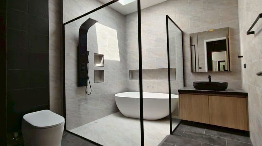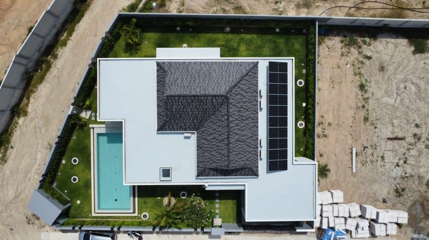 Modern tropical villa with saltwater pool, solar system, and premium features in a peaceful hillside setting minutes from beaches and shopping.