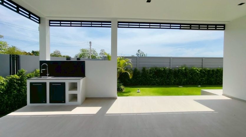 Expansive covered terrace with integrated BBQ zone—perfect for entertaining